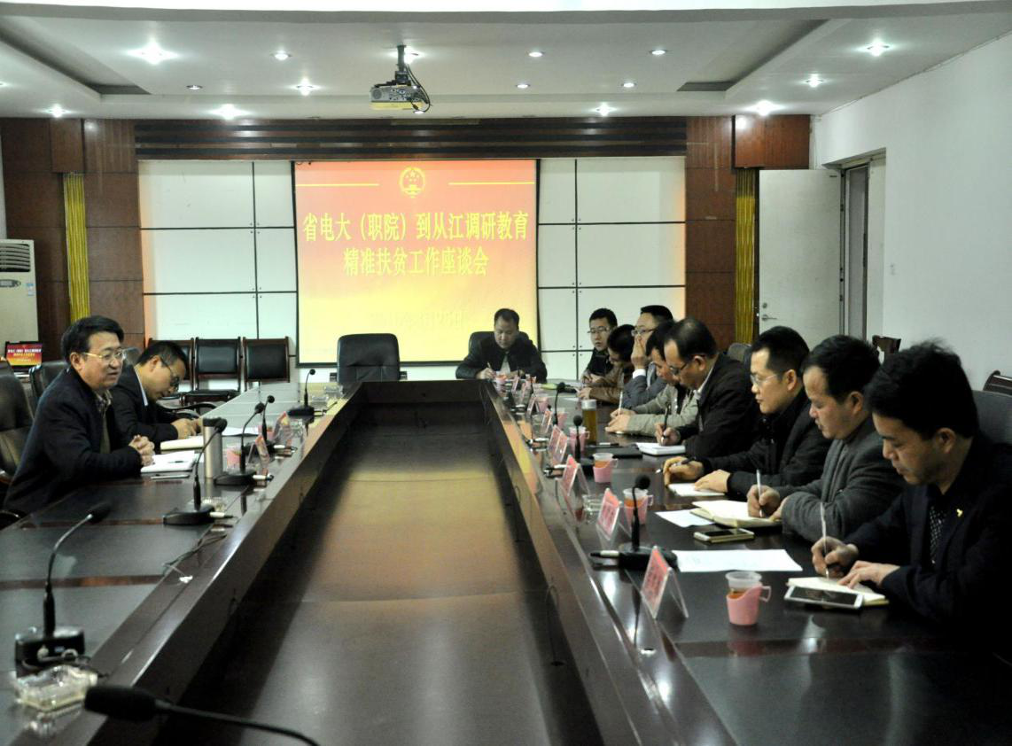 从江县政府办、扶贫办、教育科技局、招生办、从江一中、从江职中、从江洛贯高中等部门(学校)负责人分别进行了发言,就如何开展好教育精准扶贫工作提出了如下意见和建议:一是家庭确实贫困但因指标限制未能建档立卡的“双农”贫困学生,应当纳入扶贫对象;二是除了国家对贫困学生实行的“两补一免(补)”资助项目和标准之外,贵州电大(贵州职院)应出台其他配套措施,进一步全方位帮扶贫困学生;三是加强对从江县师资培训,可采取教师到贵州电大(贵州职院)接受培训和贵州电大(贵州职院)教师到从江县各所高中(职中)支教等形式。