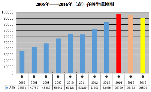 6月7日,我校2016年秋春季在校生、遗留生统计工作全面完成,全省电大(含贵州职院)在校生共90500人。