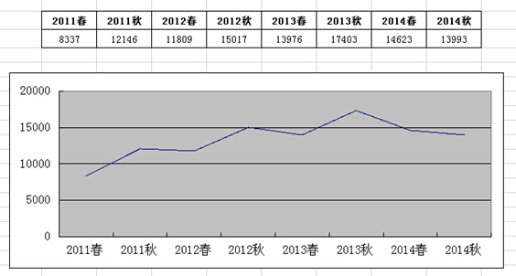 本季招生总数与去年同期相比呈整体下滑,降幅19.59%。但从2011春以来招生情况来看,整体呈上升趋势,每季平均招生规模为13400人左右,因此,本季招生出现下滑,属于正常波动范围。不过对外省高校成人招生的强势介入、网络教育的冲击、系统建设在部分地方的弱化、招生观念更新进度的迟缓等原因,我们需要进一步予以充分的重视,做好调研和应对。特别是针对全国普遍下滑的态势,需要从中提前思考、提前谋划,决不“夜郎自大”,更不“黔驴技穷”,为实现我们招生工作的持续发展奠定坚实的基础。